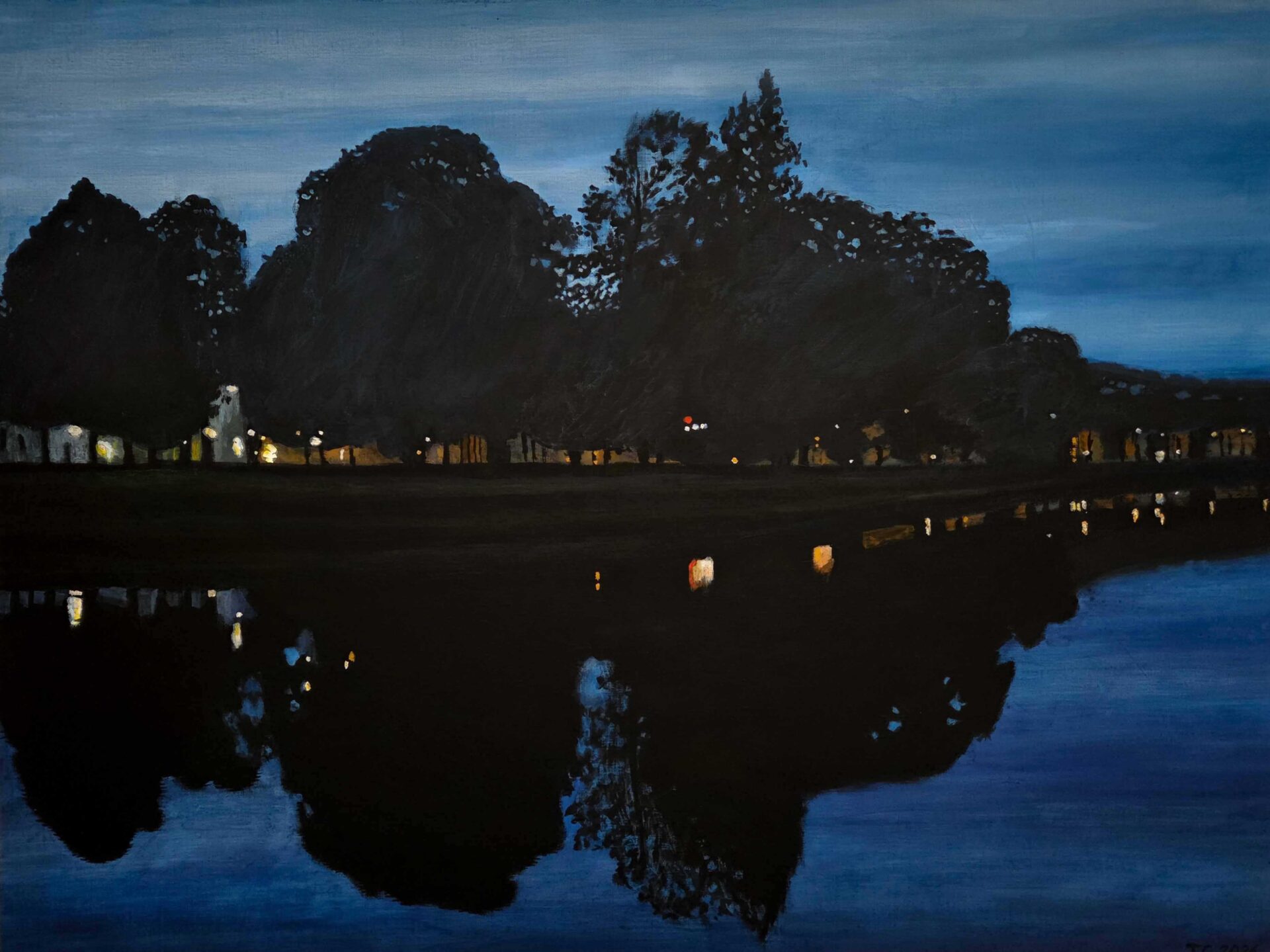 Älven älven älven, 2026 Play Pause Unmute Mute ”Älven älven älven I-III”, akryltempera på duk, 2026. Cirka 100 x 75 cm. . Foto: Tor Cederman.