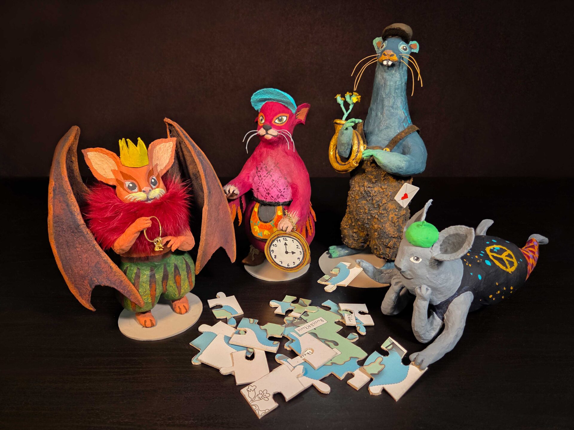 Sedan 2024 har jag tillverkat tredimensionella figurer till Åland museum. Förra året gjorde jag Kluris som bor på Ålands kulturhistoriska museum. Tidigare i år gjorde jag Skarp som hör hemma i Bomarsunds besökscenter. Nu har turen kommit till Grip på Kastelholms slott, Busis på Ålands konstmuseum och Ecke på Eckerö post och tullhus. Amanda Chanfreau har skapat figurerna i tvådimensionellt format.