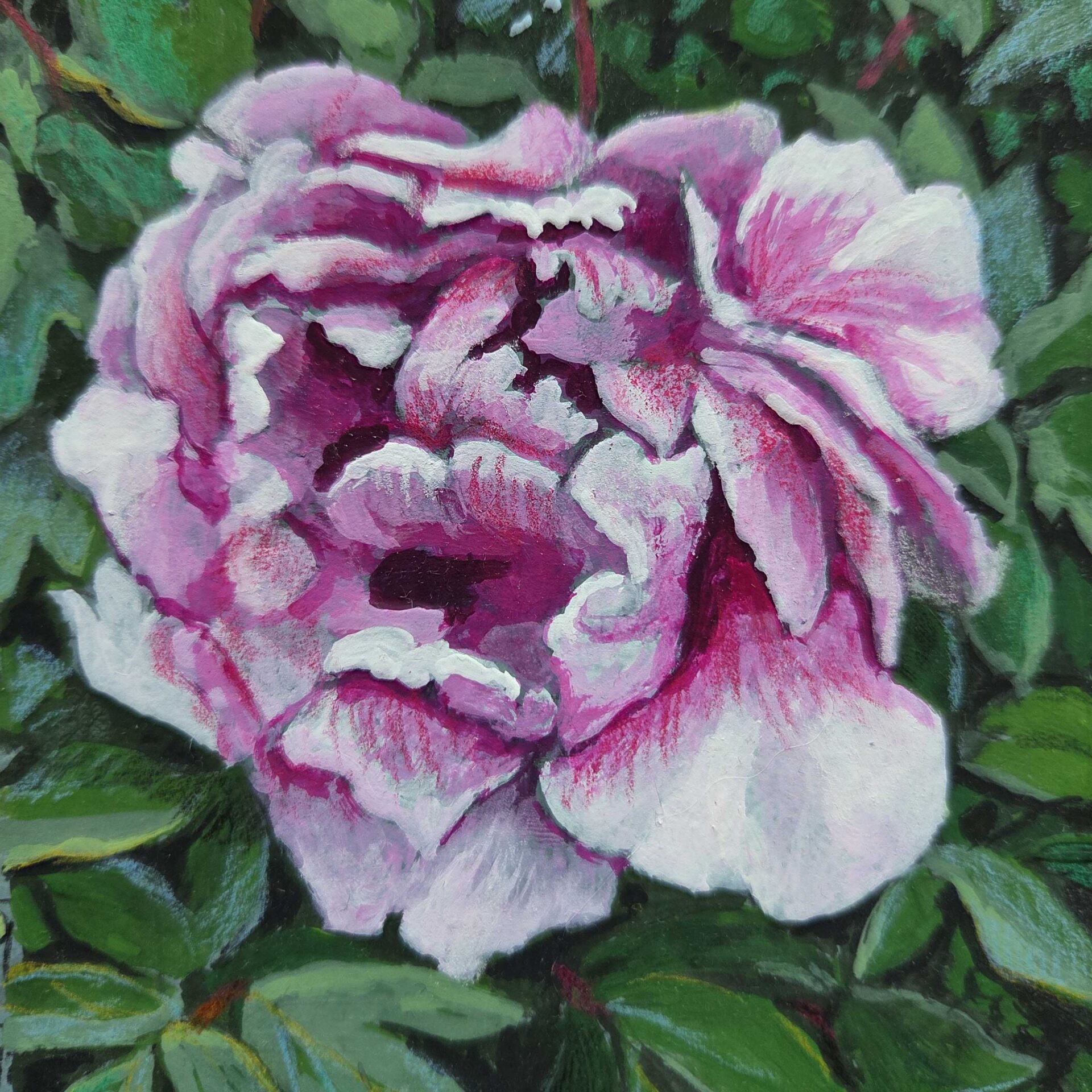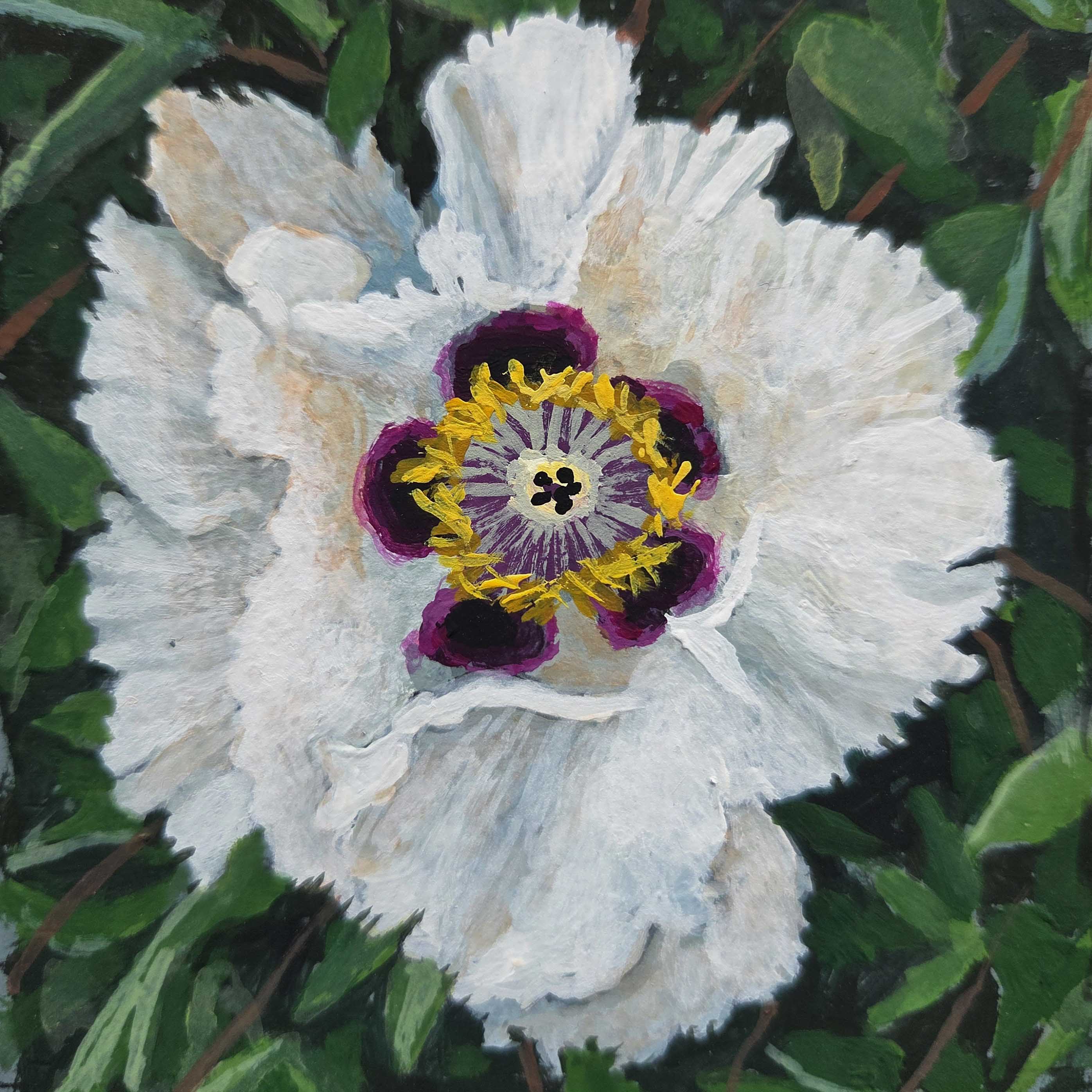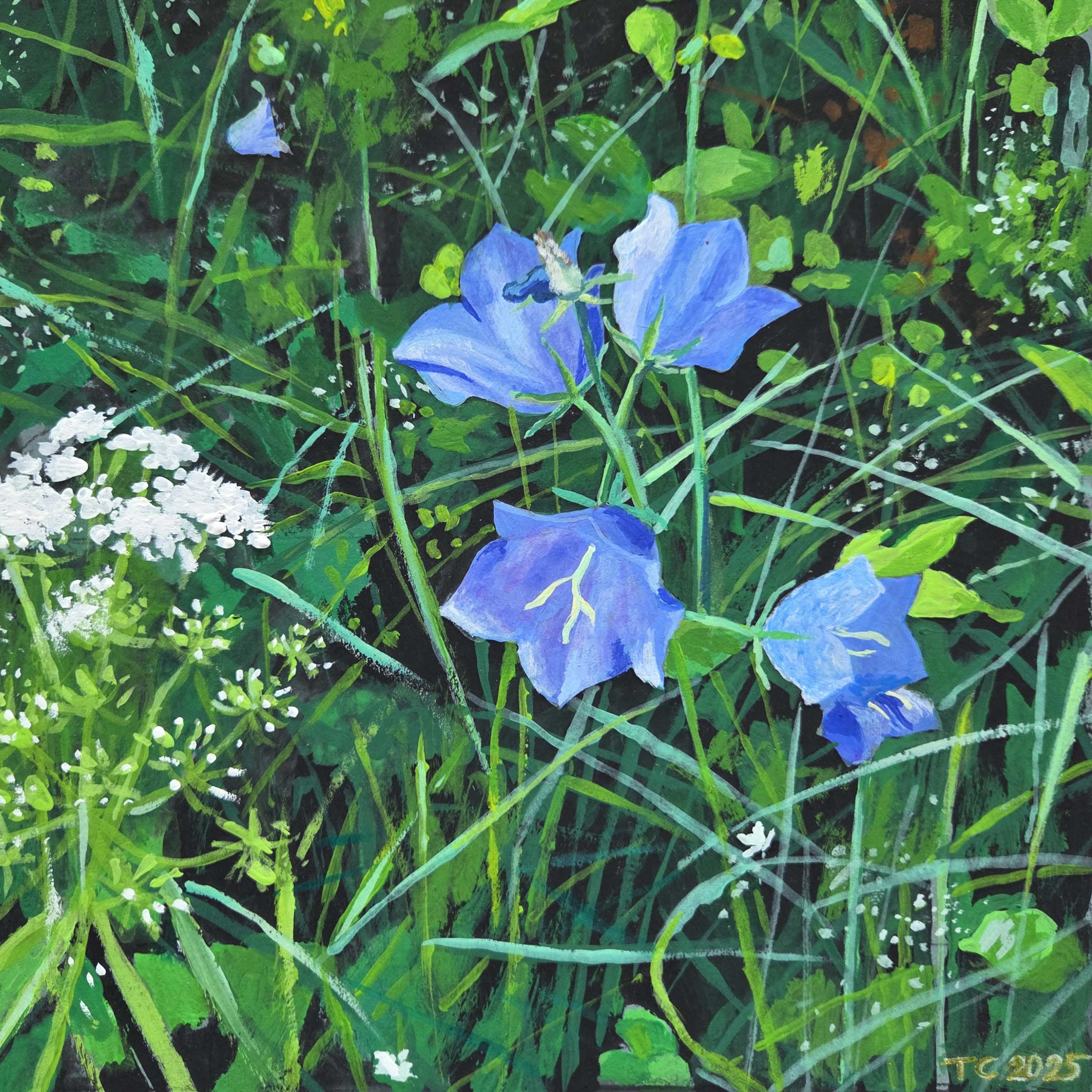 Miniatyrmålningar, 2025 Play Pause Unmute Mute Små bilder med olika motiv såsom blommor och fjärilar. Vissa bilder är inramade tillsammans i en ram. Akryltempera 2025. Foto: Tor Cederman.