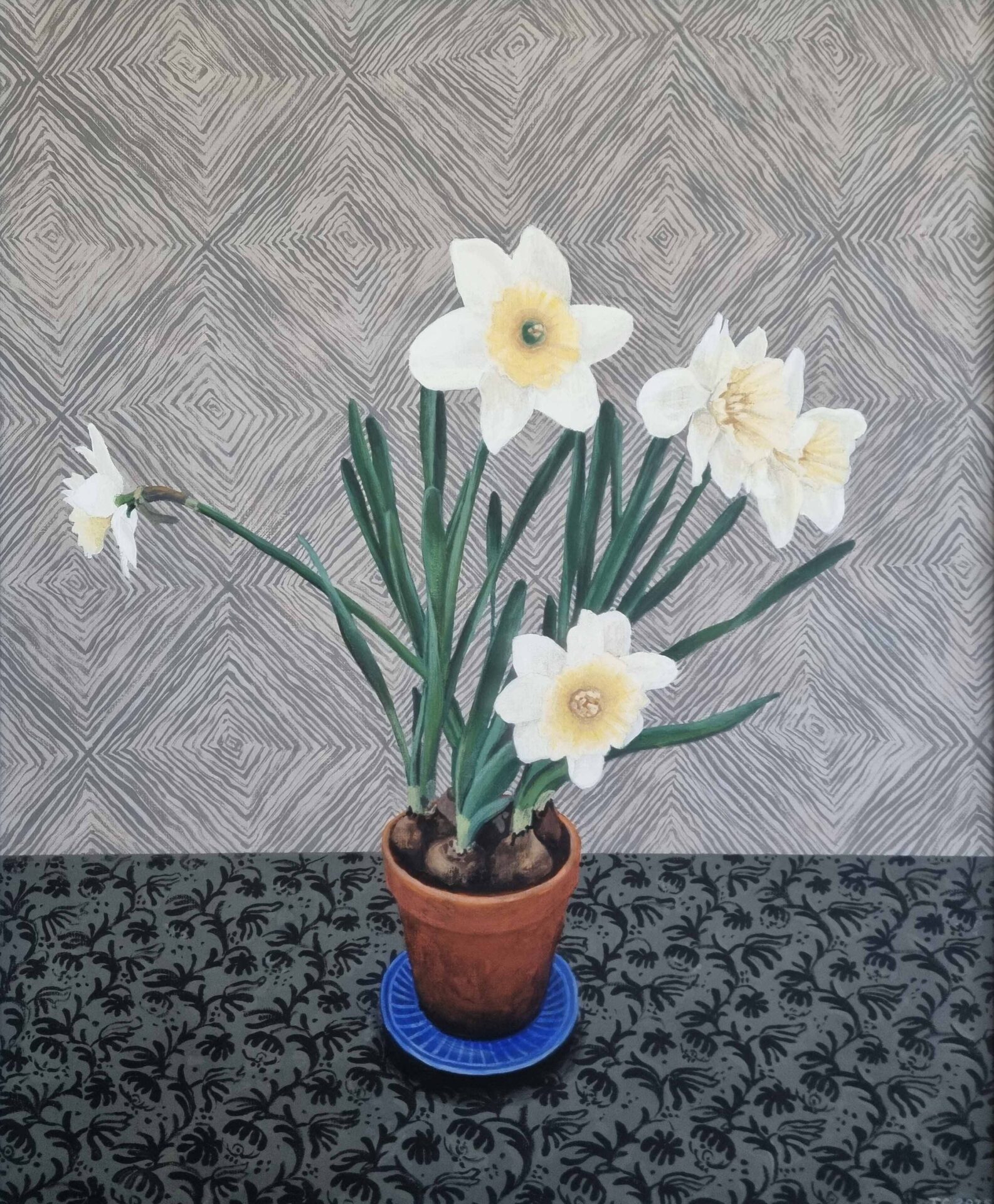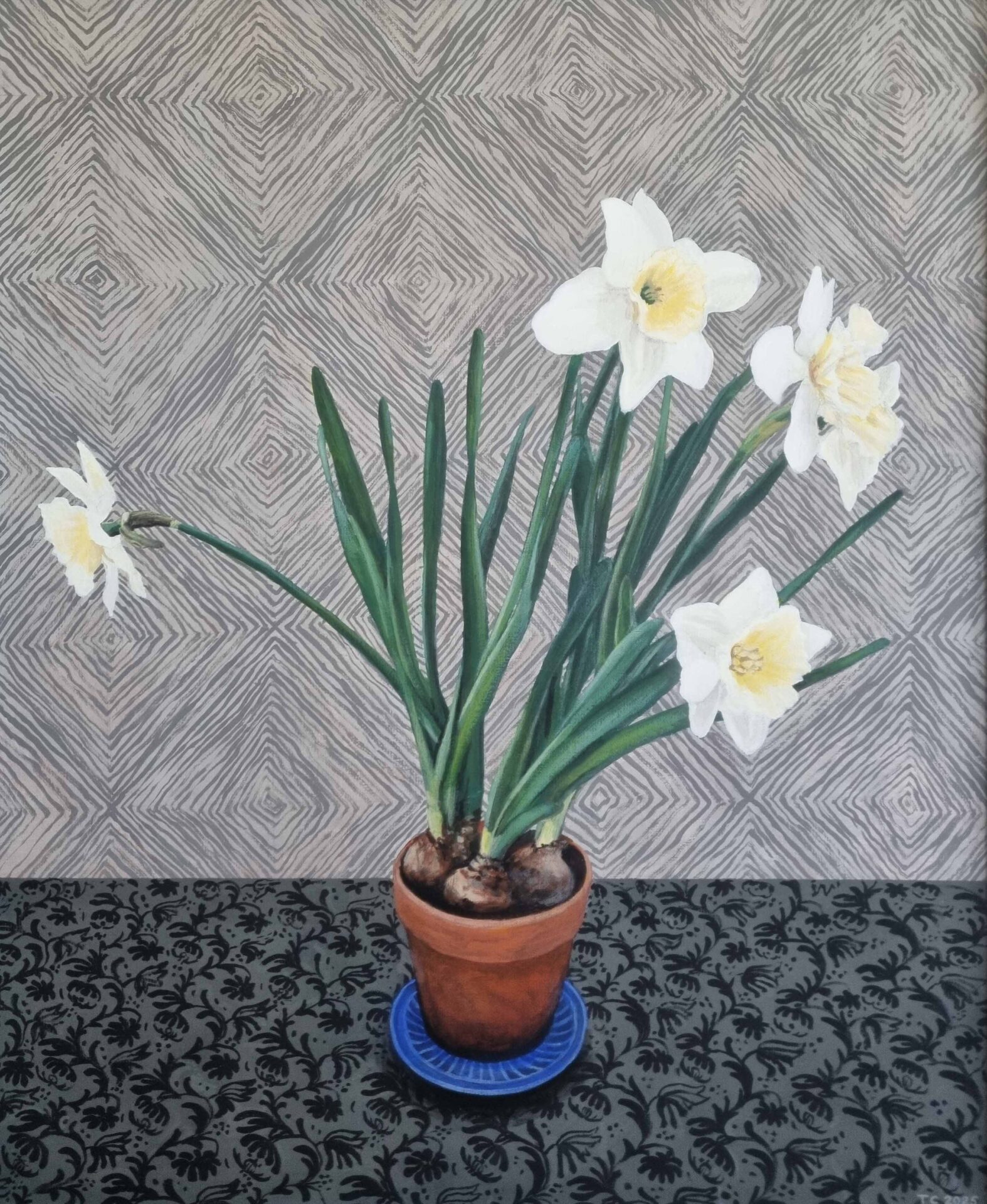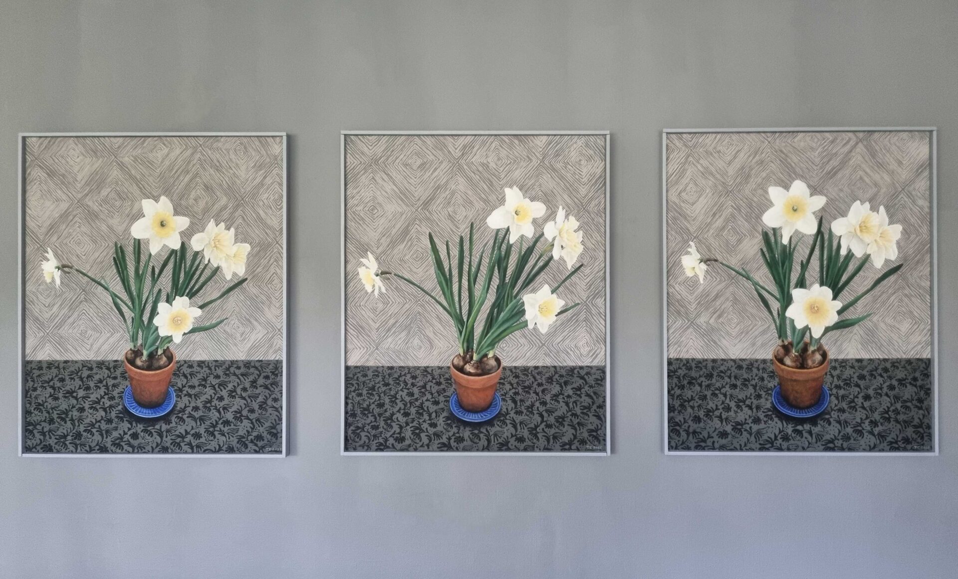 Narcissus, 2025 Play Pause Unmute Mute Triptyk ”Narcissus”, akryltempera 2025. Ca 65 x 80 cm. Foto: Tor Cederman.